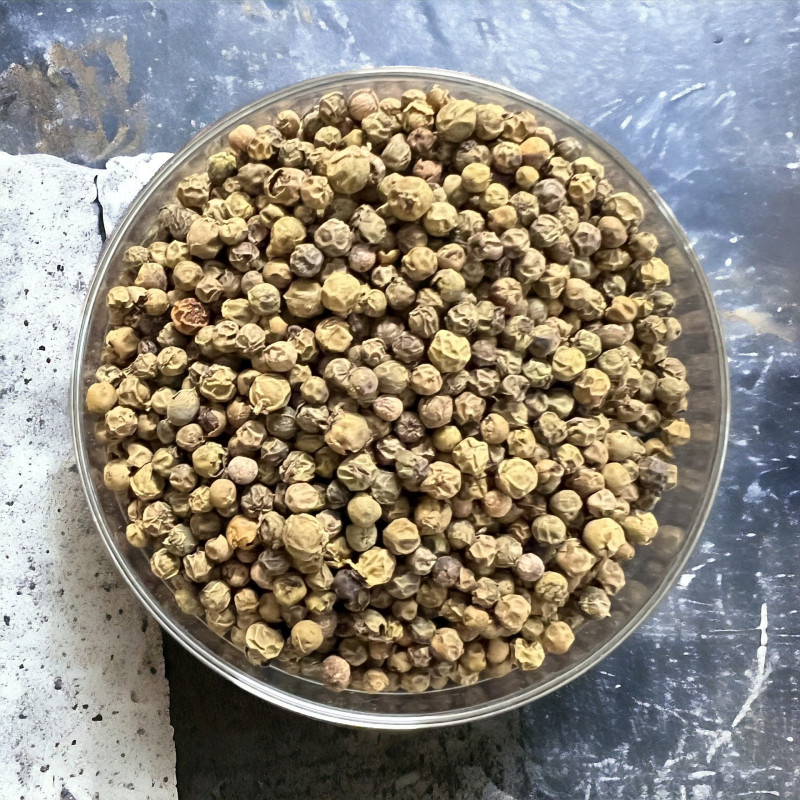 Green pepper consists of berries from the pepper plant harvested before maturity. They can be found fresh (very rarely in our regions), preserved in brine, or dehydrated as in this case.