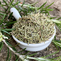 Le romarin est parfumé, c'est l'image de la Provence. Moulu comme ici, il dégage toute sa saveur sans laisser de traces dans le plat ni en bouche! Délicieux sur les grillades d'agneau et de porc, dans les marinades et les civets, il participe aussi au mélange des herbes de Provence Existe en feuilles entières, cliquez! Existe aussi en feuilles hachées,...