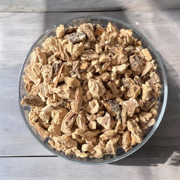 - Écorce coupée: les morceaux sont plutôt de forme allongée et leur longueur se situe entre 1 et 3cm.