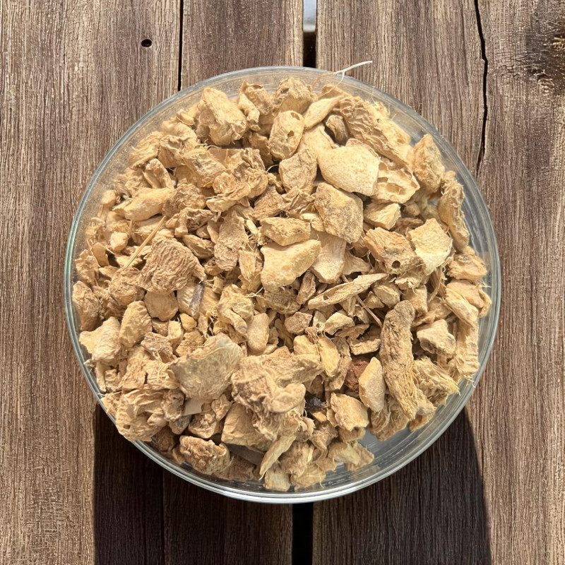 Ici, c'est la racine entière (appelée rhizome) qui est d'abord coupée en tranches épaisses puis déshydratée.