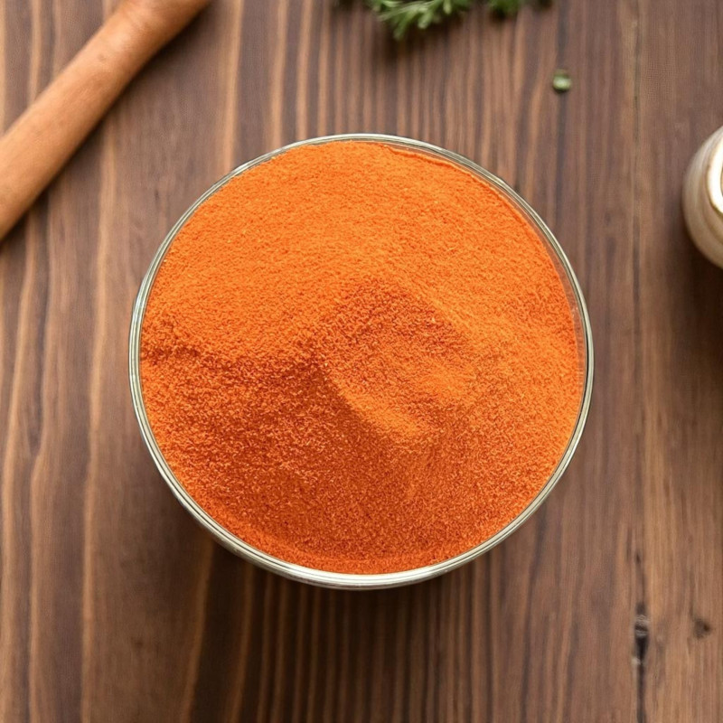 Deze extreem fijne en zeer geurende tomaatpoeder zal al uw gerechten heerlijk en onmiddellijk opfleuren. Zodra u het over uw gerecht strooit, zal het zich erin mengen, met een heerlijke smaak van zomertomaten en een prachtige rode kleur.
