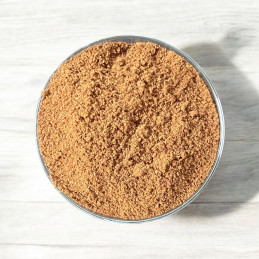 Fijn poeder met een graanachtige smaak en een vleugje bitterheid.