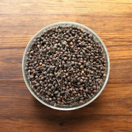 Je kunt het een beetje roosteren in een pan voordat je het tot poeder reduceert, of gewoon in de molen doen net voor gebruik. Het is magisch met vis, schaaldieren (vooral Sint-Jakobsschelpen) en absoluut geweldig met eend. Het maakt een fruitsalade origineler en zal een chocolade dessert of ijs subliem maken! Je kunt het ook combineren met een fleur de sel, net voor het serveren op je gerecht.